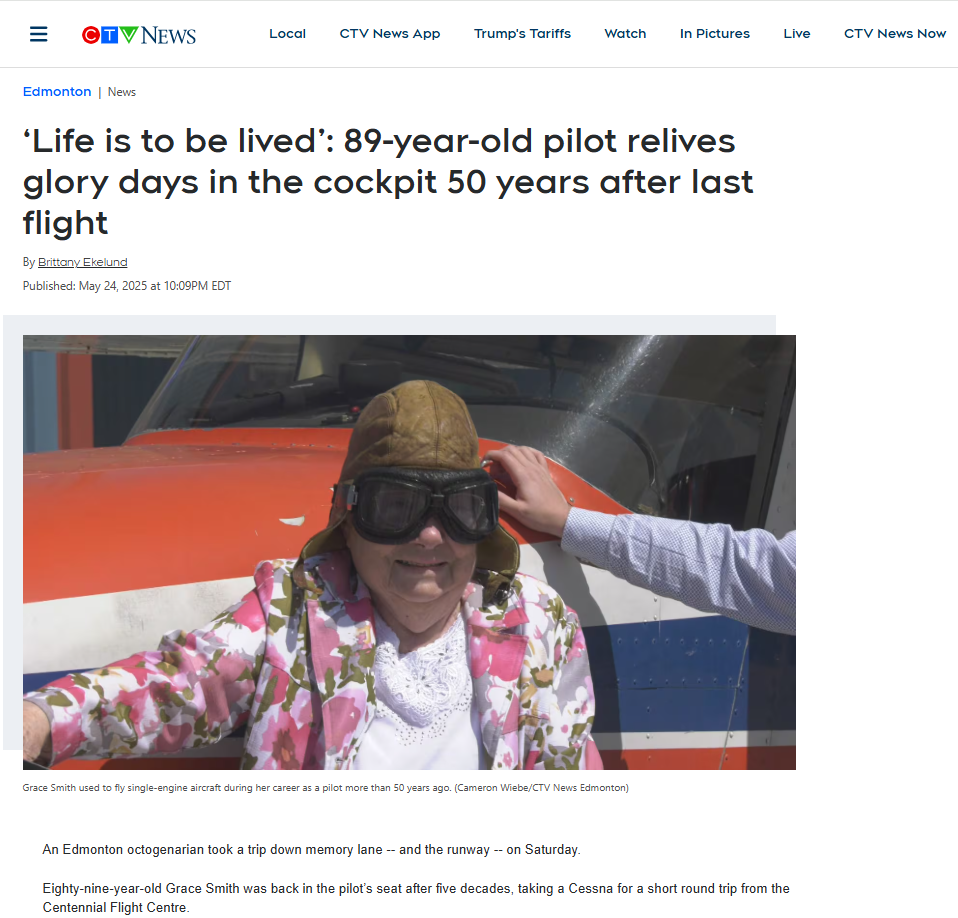 Thanks to Chartwell Wish of a Lifetime, Grace Smith, a lifelong aviation enthusiast, fulfilled her dream of flying a plane again after 50 years. My outreach secured national coverage in Zoomer Magazine and CTV, showcasing the joy of lifelong dreams and community support.
